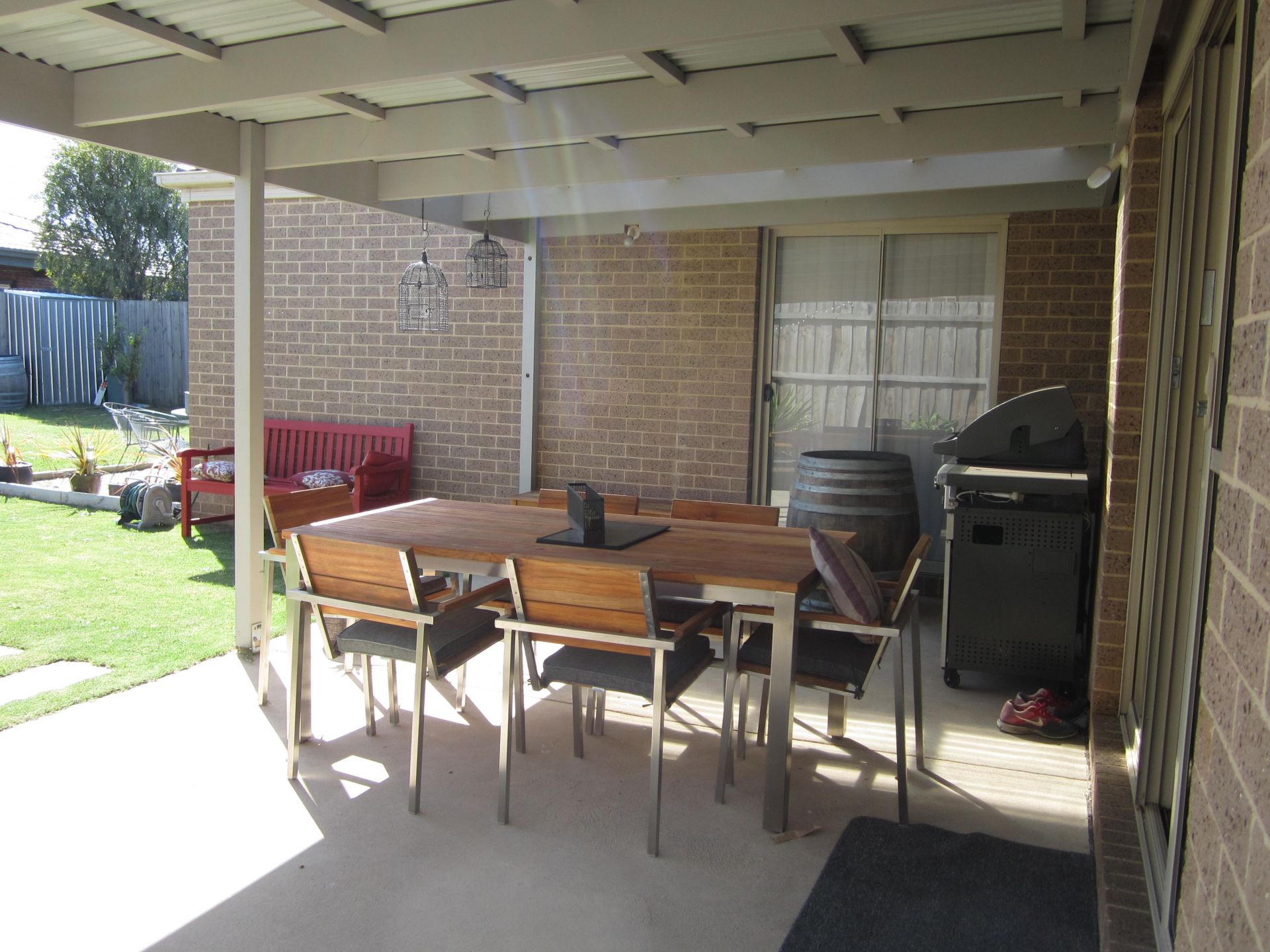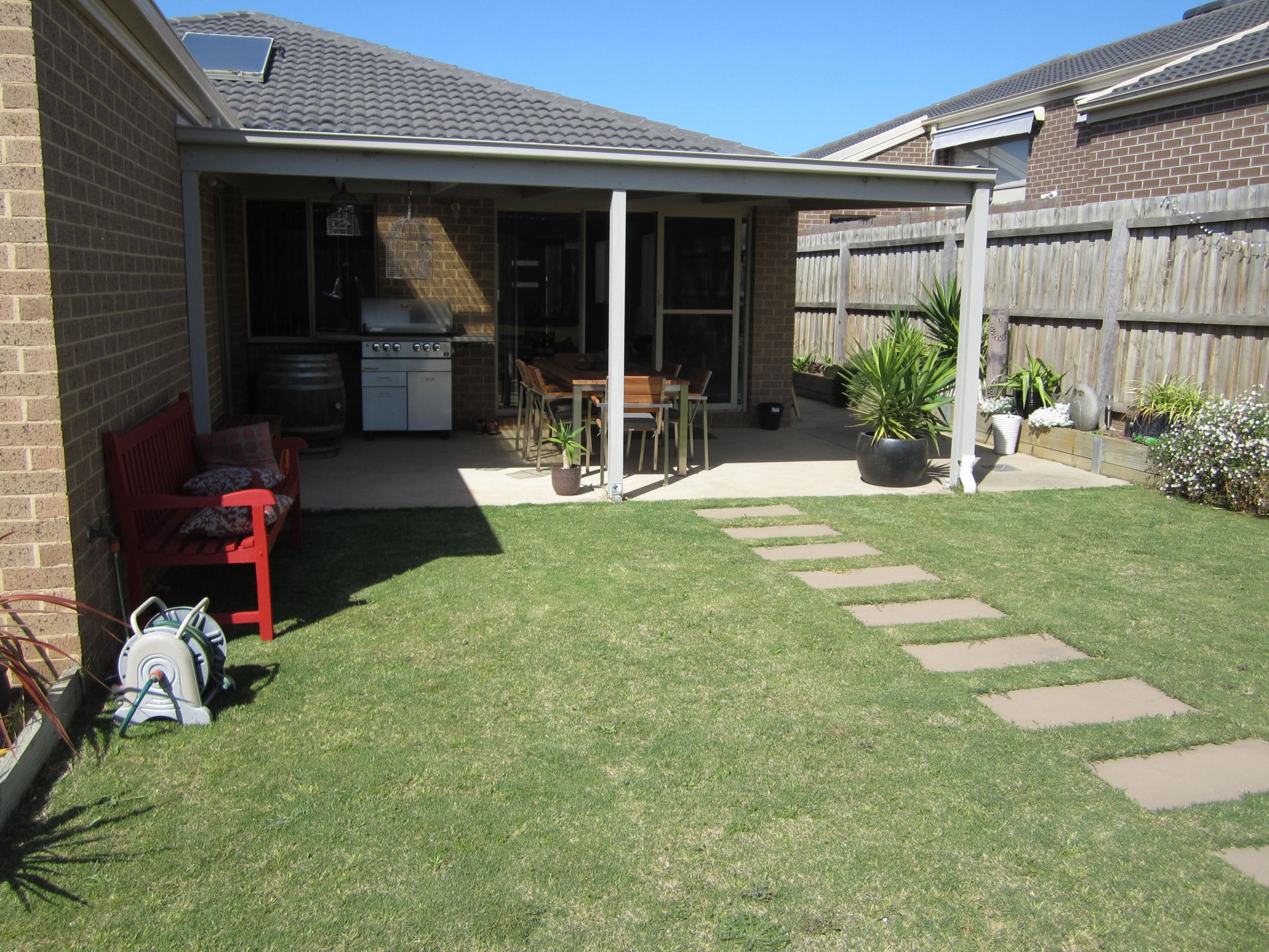 - Living area opens out to undercover entertaining.