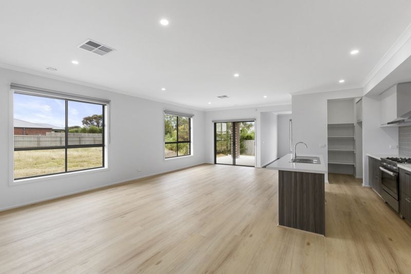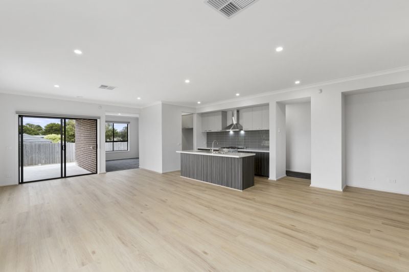 - Open plan kitchen/living area with sliding door access to yard.