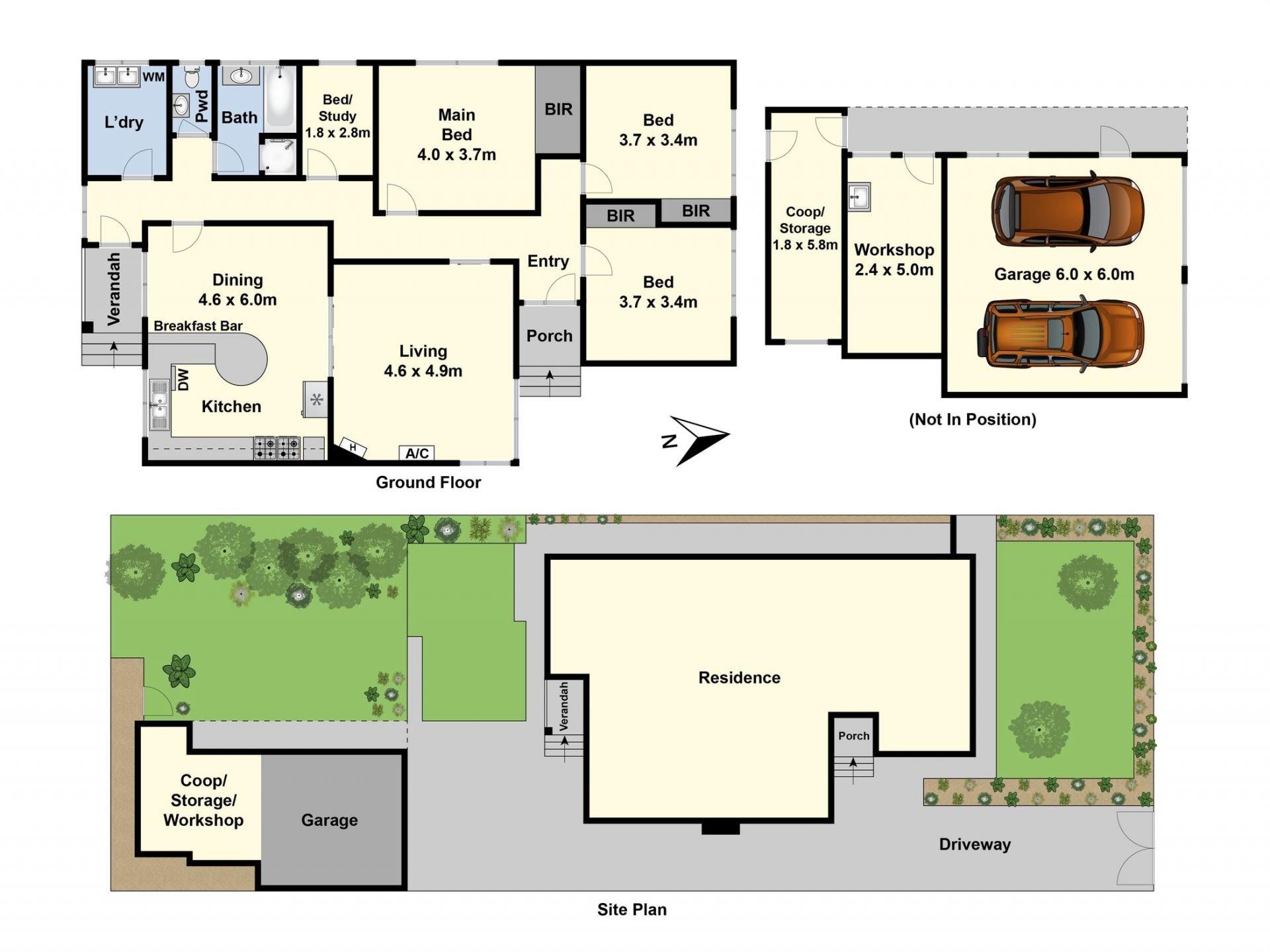 The home comprises three spacious bedrooms (all with BIRs) plus a separate study, ideal as a home office, nursery, or potential fourth bedroom. High ceilings enhance the sense of space, and the north-facing lounge, complete with air conditioning, opens to an expansive kitchen featuring two ovens, a large dining area, and a breakfast bar for casual meals.
