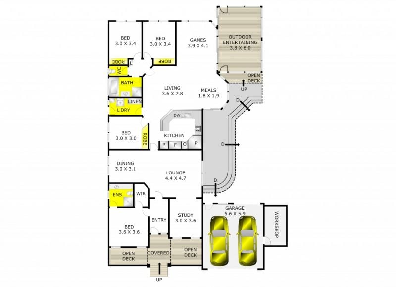 Lounge/dining room, formal entry, 4 bedrooms, study, spacious open plan kitchen meals living, family and ensuite bathrooms.