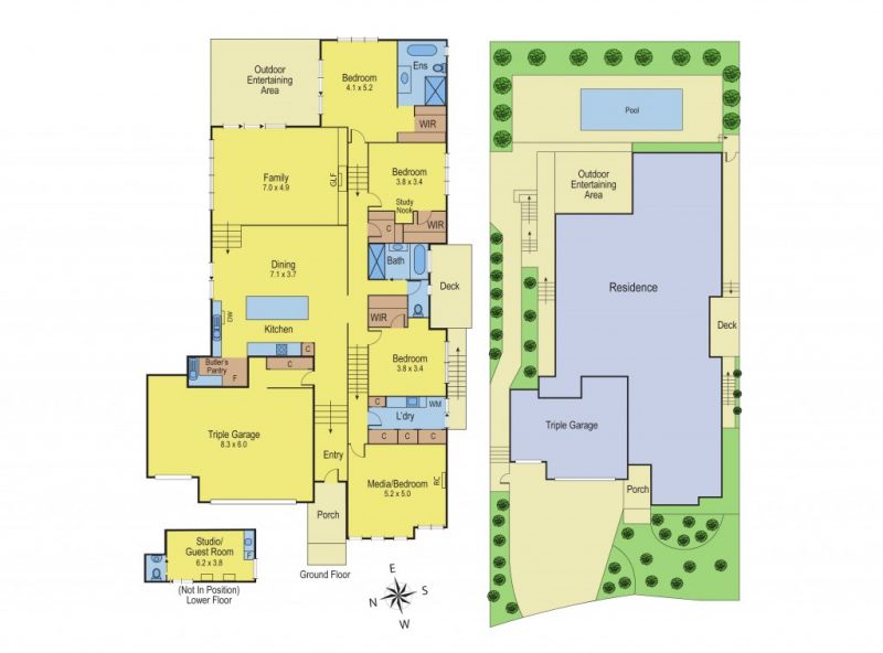 In ground swimming pool, covered and decked outdoor entertainment area, three car garage with direct access to the home, landscaped garden all set on a 735m site.