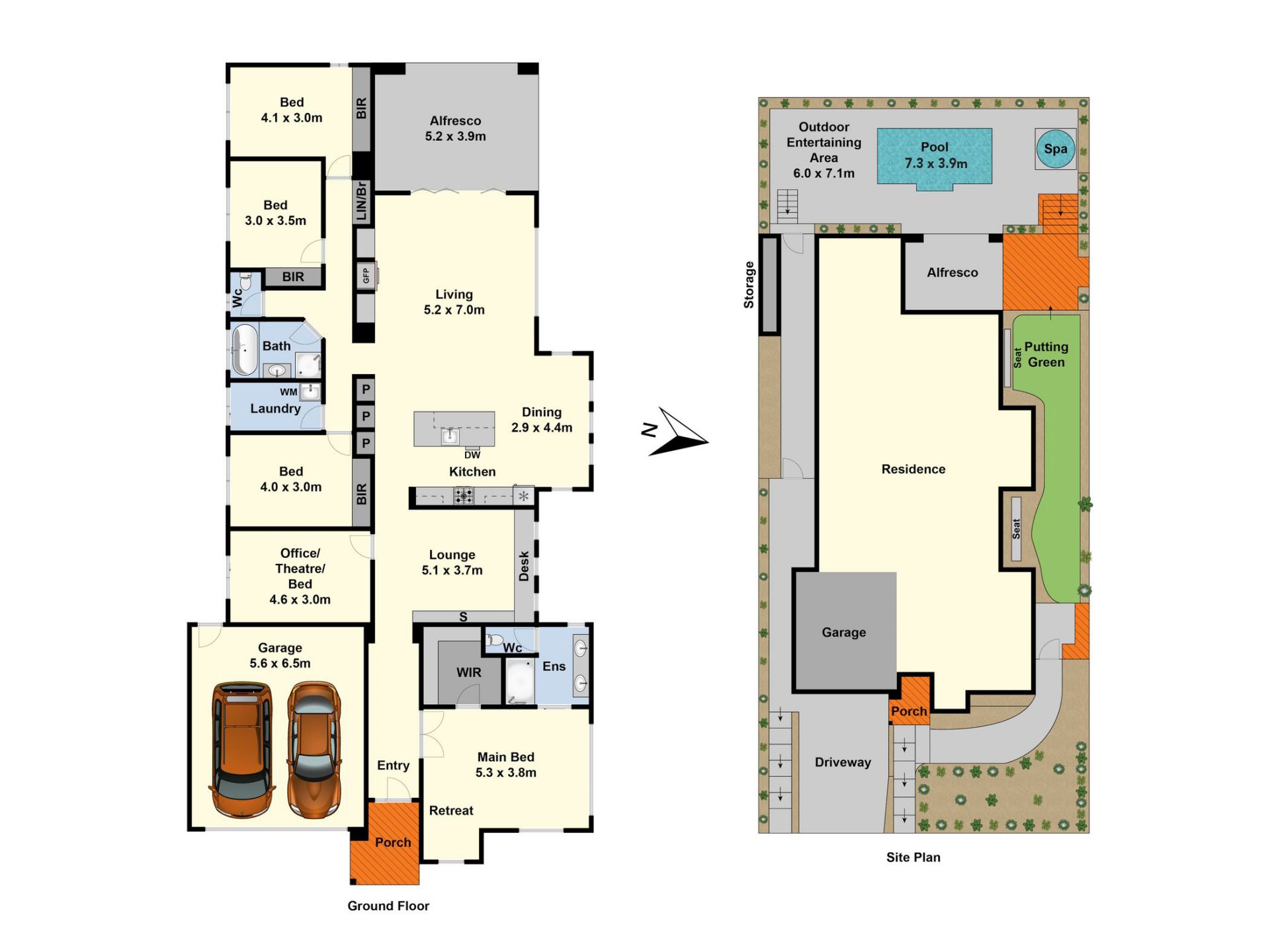 The dream kitchen includes stone benches with waterfall edges, an integrated Bosch dishwasher, 900mm electric oven, appliance tower, plenty of storage and a very large pantry and adjoins the generous dining space with enough room to accommodate 12 seated guests. Double-glazed windows in the bedrooms at the back of the home which provide extra comfort, and these bedrooms are serviced by the family bathroom and separate toilet. The fifth bedroom can easily be transformed into an office, complete with external side access and a separate internal lock to maintain work-life balance.