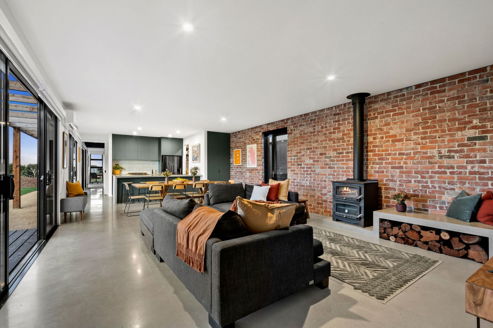 • Generous seating space, cozy wood fire, spacious kitchen, cool room, and ample storage